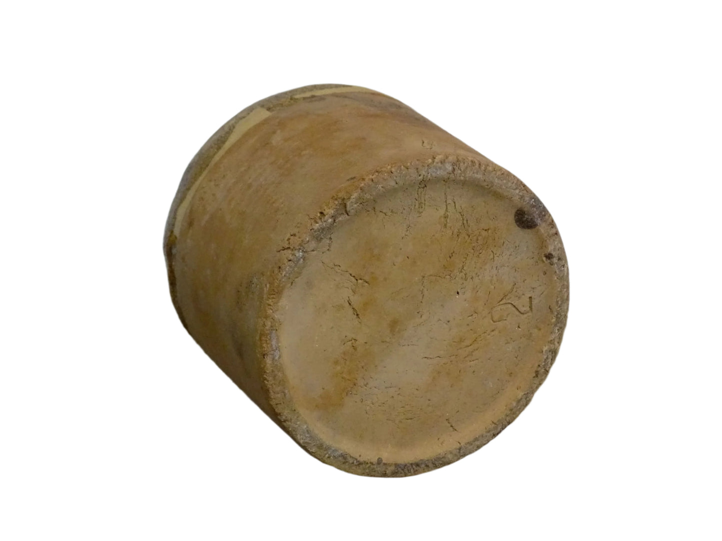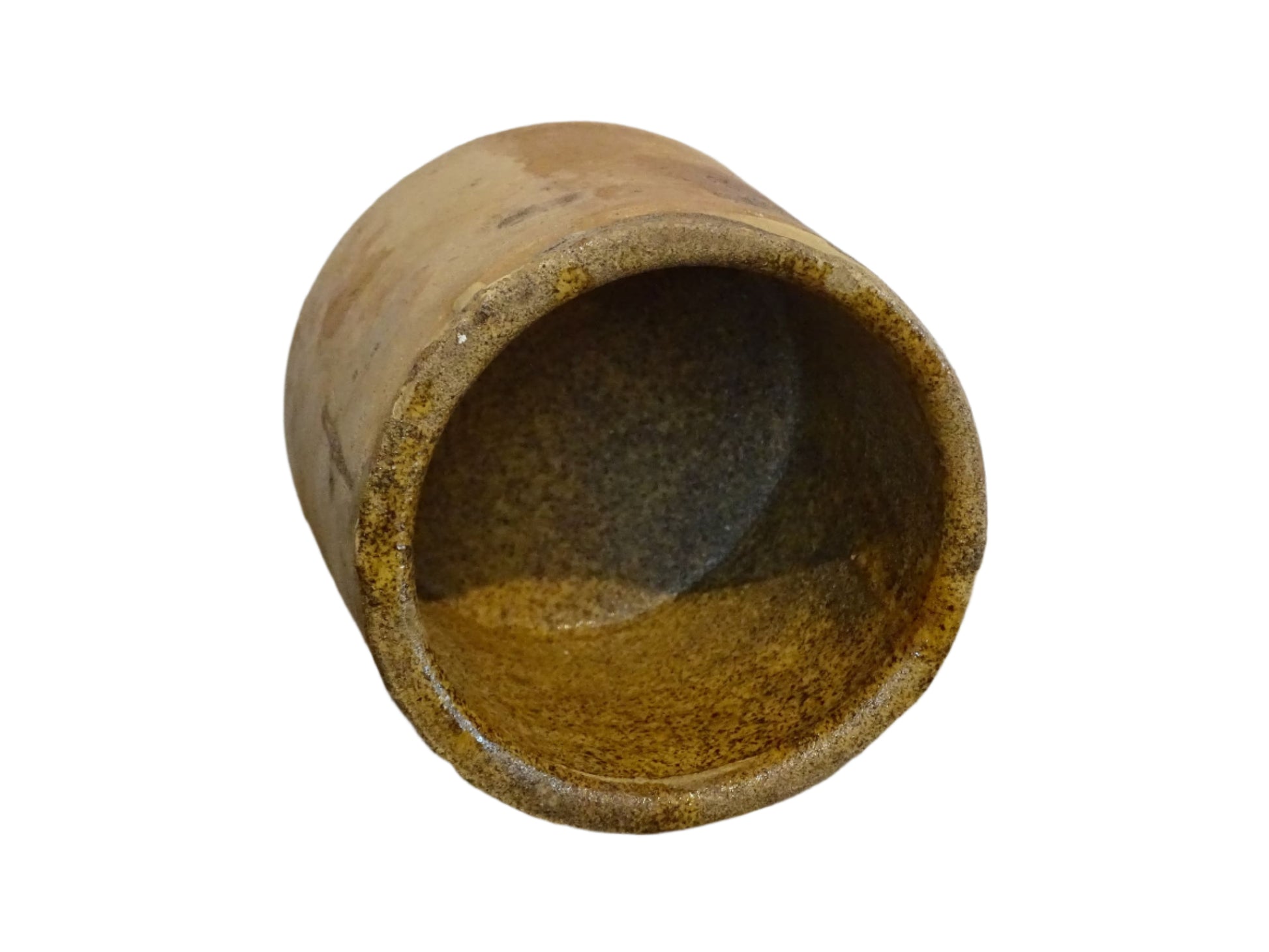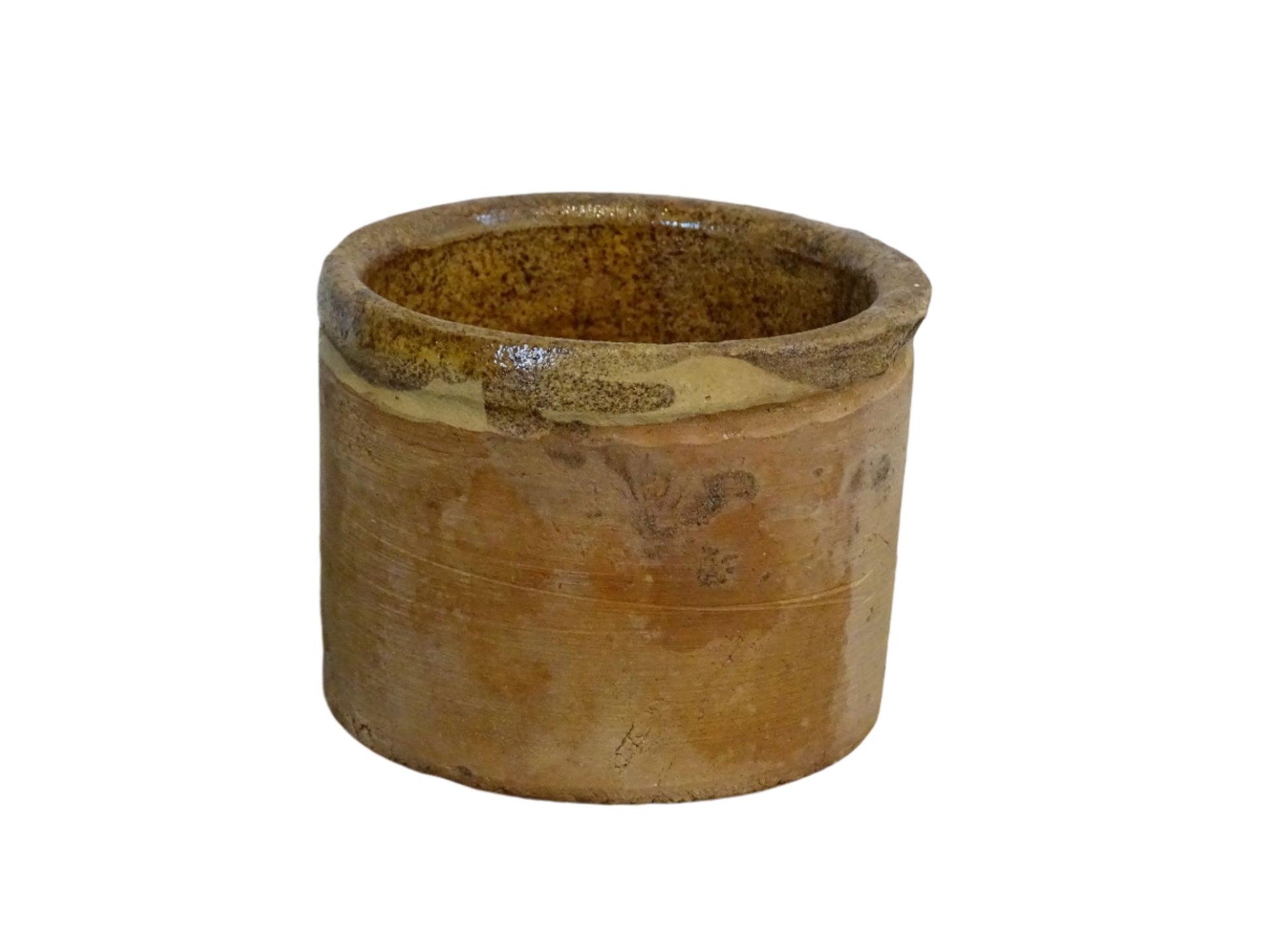 Small French antique pottery pot with a brown glazed interior. This rustic pot would look beautiful standing with other pieces of French pottery, alternatively it would could be used to hold little trinkets.