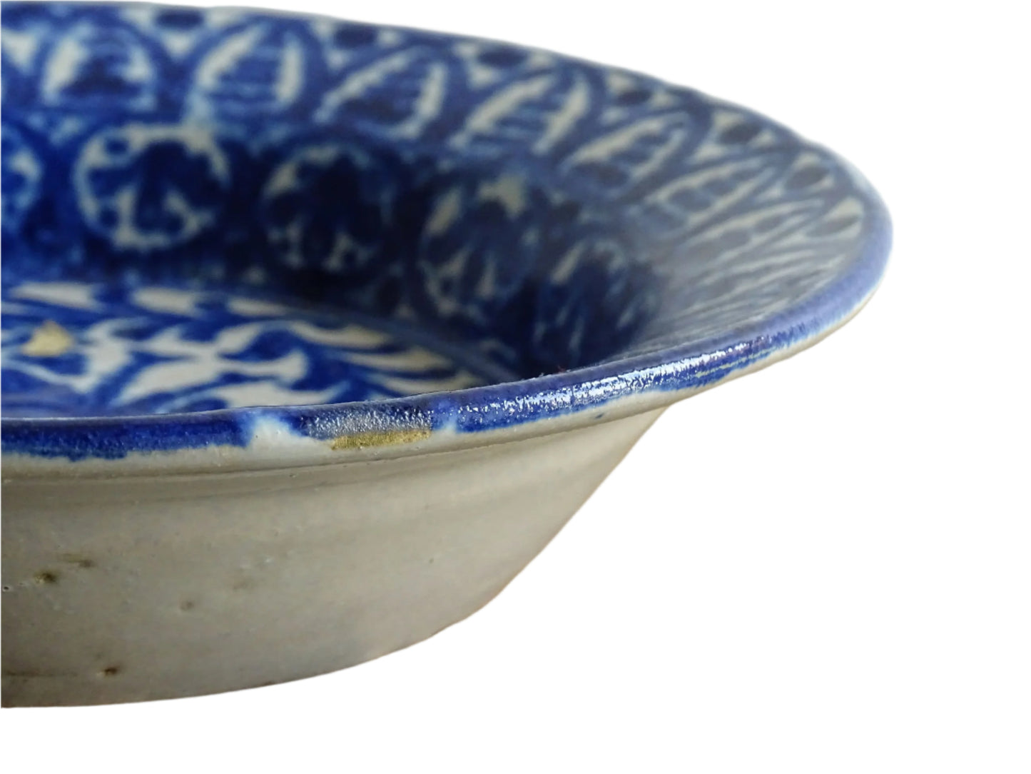 Spanish Antique Fajalauza Pottery Bowl with Blue Hand-Painted Bird Details: