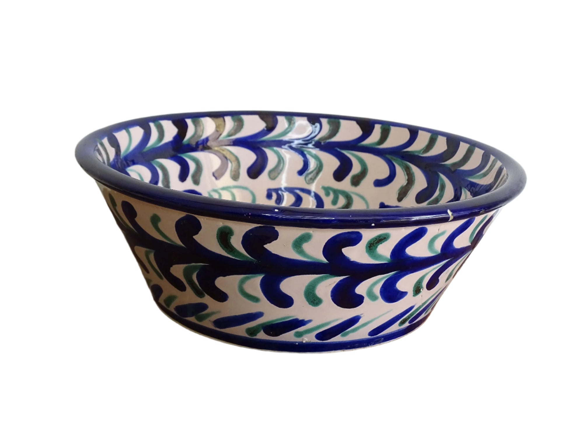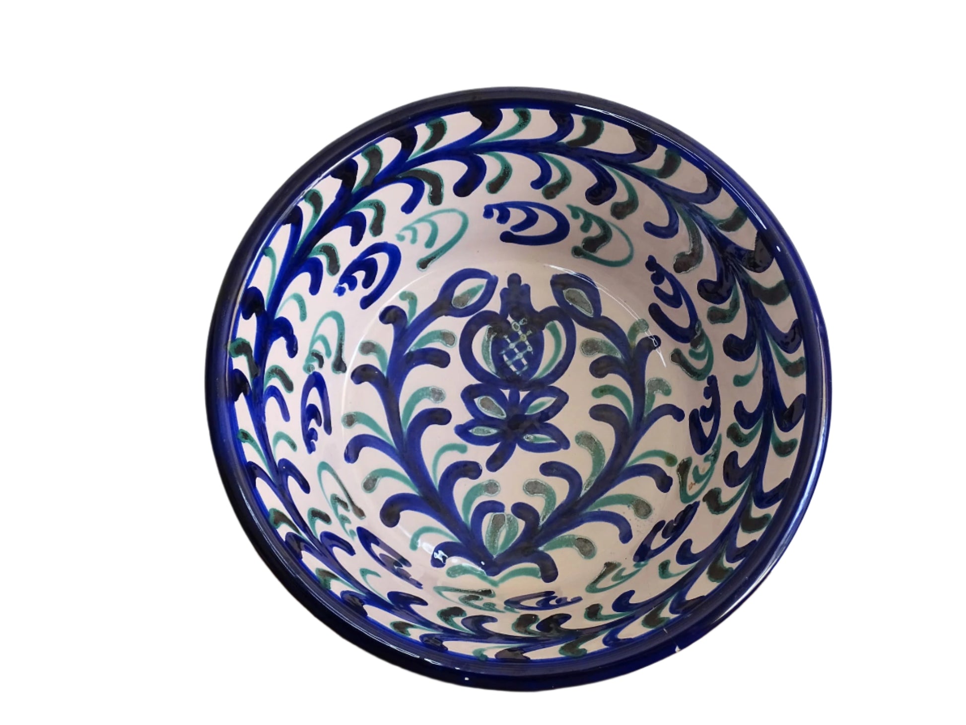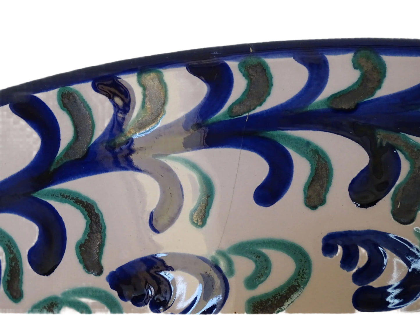 Spanish Vintage Fajalauza Pottery Bowl in Green and Blue 9.8"